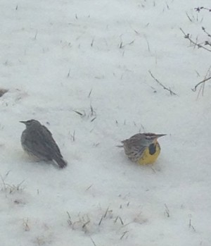 Meadowlarks Posted byrebeccabev5March 5, 2014March 5, 2014Posted inBackyard Bird PicturesTags:meadowlark Meadowlarks feasting on a cold winter day 🙂 Share this: Click to share on Pinterest (Opens in new window) Pinterest Click to share on X (Opens in new window) X Click to share on Facebook (Opens in new window) Facebook Click to email a link to a friend (Opens in new window) Email Like Loading... Related